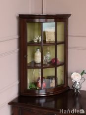 英国から届いたコンパクトなアンティークキャビネット、お部屋の角に置けるおしゃれなコーナーキャビネット