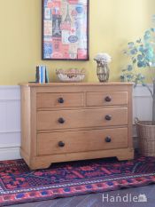 ツートーンカラーの取っ手がおしゃれなアンティークチェスト、イギリスから届いたオールドパインの表情が美しい3段チェスト