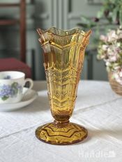 アールデコスタイルのおしゃれなフラワーベース、アンバー色の美しいプレスドグラスの花瓶