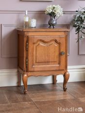 フランスから届いたおしゃれなサイドキャビネット、美しい彫りが魅力的なアンティークのナイトテーブル