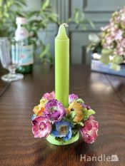 クラウンスタッフォードシャーの陶花、英国アンティークのキャンドルスタンド