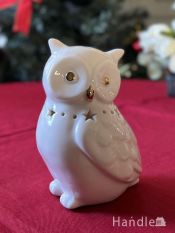 しずく型の模様が輝く陶器のLEDライト、セラミックで出来たフクロウのオブジェ