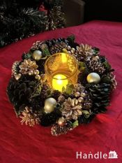 クリスマスリース型のキャンドルホルダー、1ホルダータイプの可愛いロウソク入れ