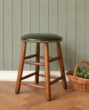 英国スタイルのクッション付、アンティーク風 スツール(緑)