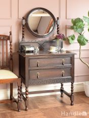 オーバル型のミラーがついたおしゃれなドレッサー、ツイストが美しい英国アンティークのドレッシングチェスト