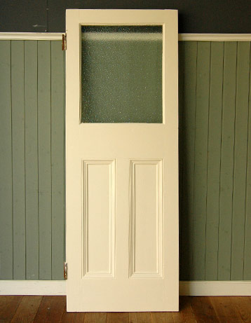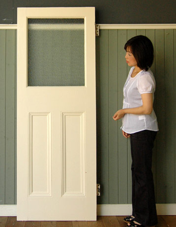 クリームペイントのガラス入りアンティークドアが届きました。 塗装のメンテナンスも全てキレイにしてあるので、届いてすぐにお使い頂けます。
