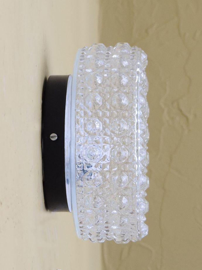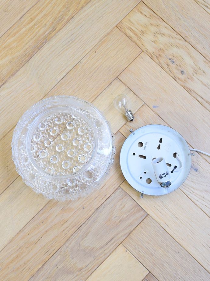 フランスから届いたアンティークのライト、丸い型押しガラスのおしゃれな照明(E17電球付) (商品番号 x-1065-z)