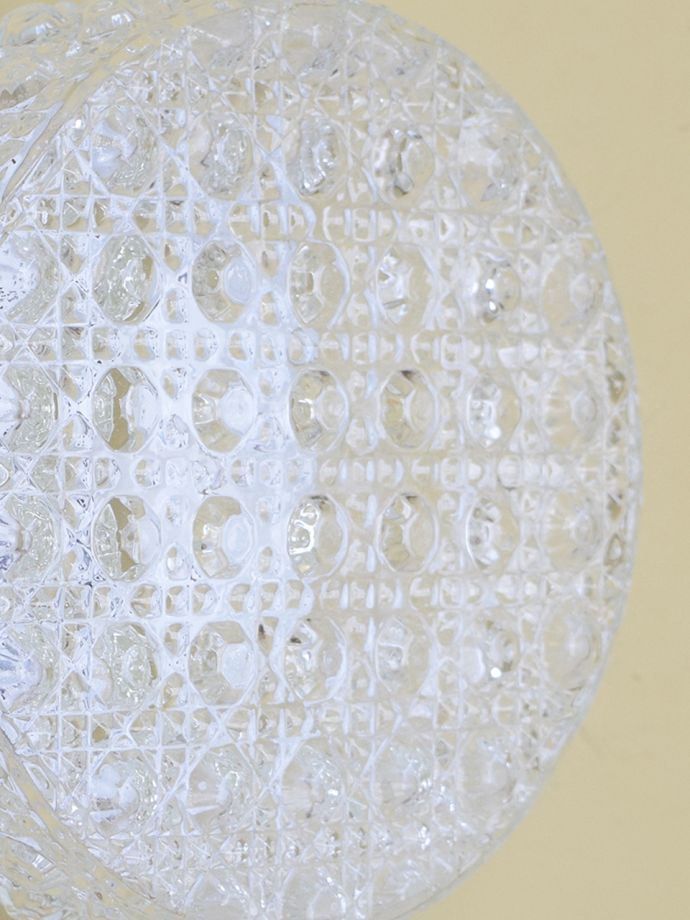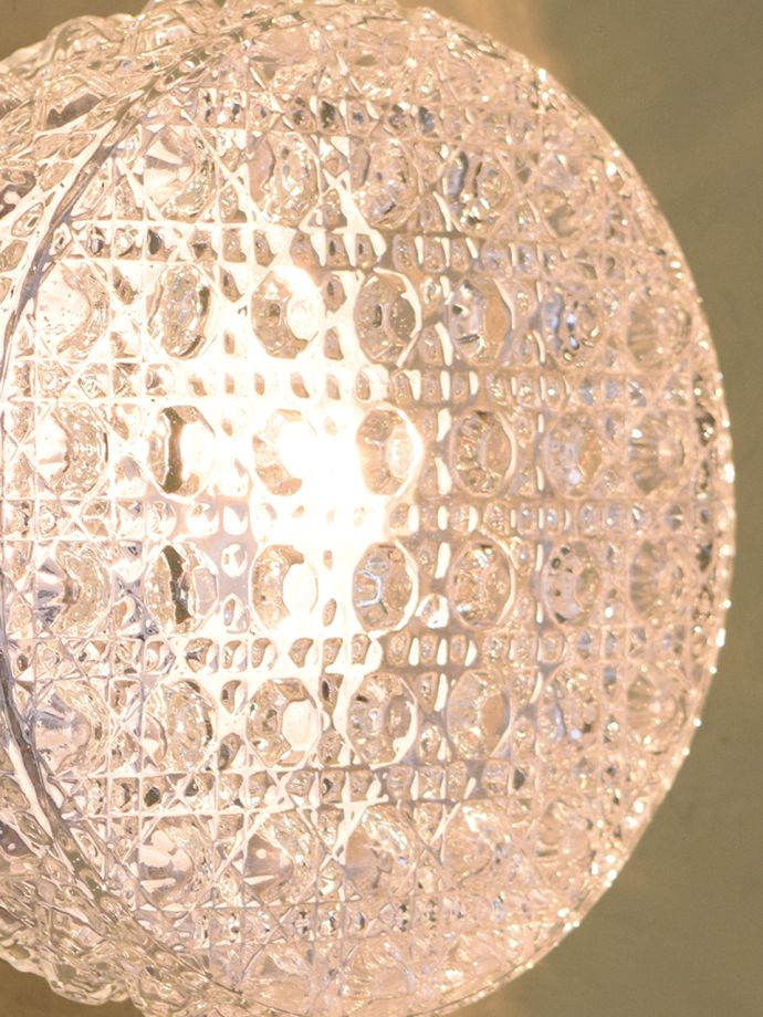 ガラス好きの私は、丸い形のシェードに丸い型押し模様が入ったおしゃれなガラスシェードを見ているだけでワクワクする~!