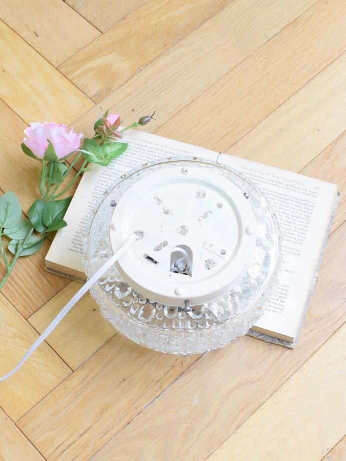 天井付のシーリングライトとして使われていたものだと思うんですが、壁に付けてウォールランプとして使ってもいい感じ~!