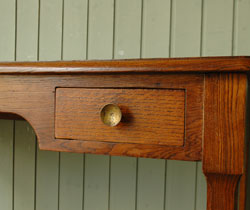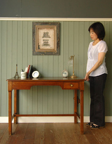 - テーパードレッグが美しいマホガニー材の机、小さな引き出しが付いた英国アンティークのデスク (q-3422-f)