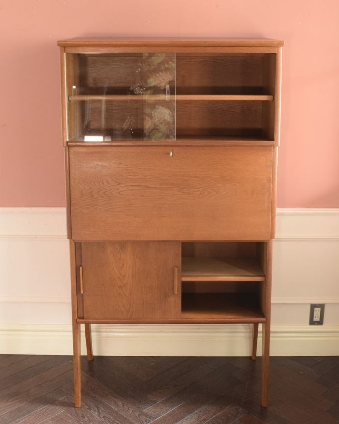 スッキリとしたデザインのキャビネット。さりげなくデスクになっちゃうヒミツが隠れています。見た目だけじゃなくカッコよく使えて便利なヴィンテージ家具です。