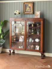 - フレンチカブリオールレッグが美しいショーケース、美しいカギが付いたアンティークの飾り棚 (j-3608-f)