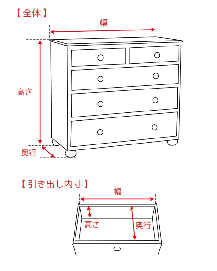 ※引き出しは手前が一段目です。