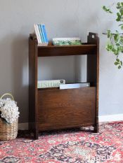 - アンティークのおしゃれなマガジンラック、持ち手がついた移動ラクラクなオーク材の雑誌収納 (j-3669-f)