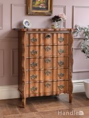 - 曲線ラインが魅力的なアンティークチェスト、南仏スタイルの5段タイプのコモード (z-344-f)