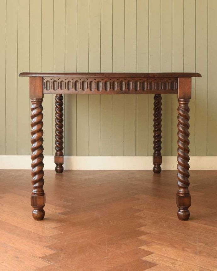アンティーク風のダイニングテーブル、ツイスト脚が美しい4人掛けのテーブル (y-375-f)