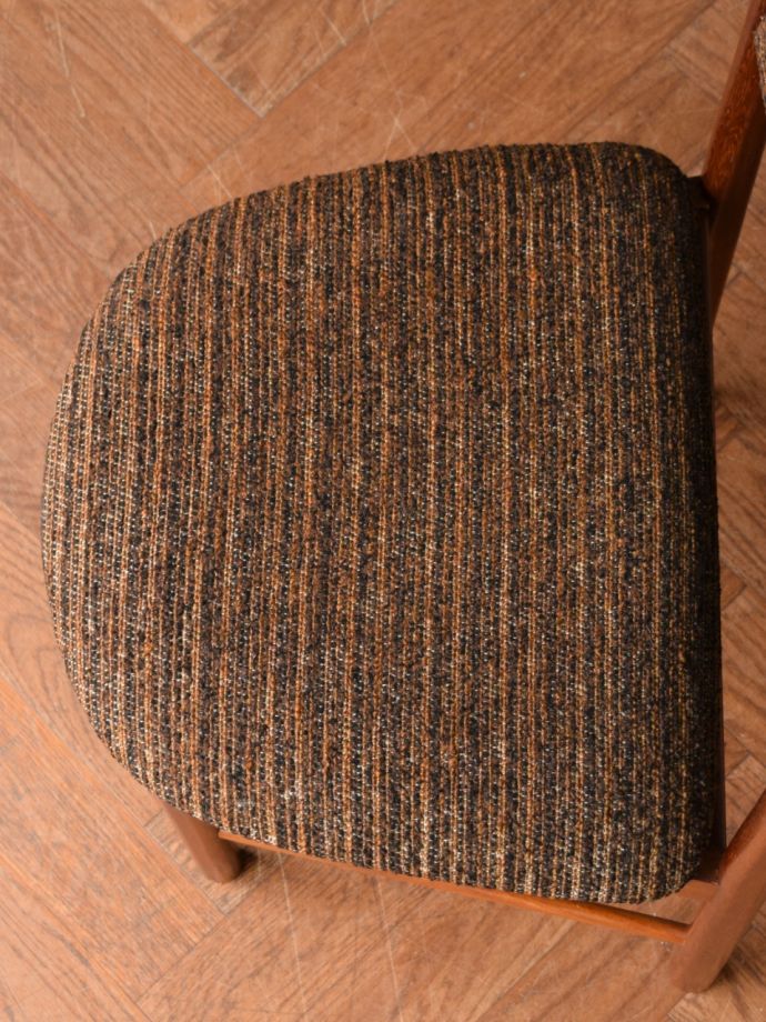 シンプルなデザインを活かせるよう考えて座面の生地を選びました。貼り替えも出来ますので使っていって汚れが気になった時、いつでもご連絡下さい。