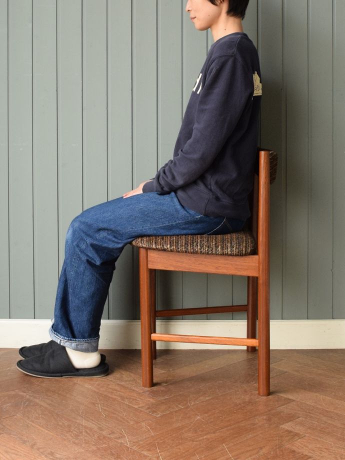 シンプルでスッキリとまとめられたヴィンテージチェア。座った時にしっかり支えてくれる構造になっています。