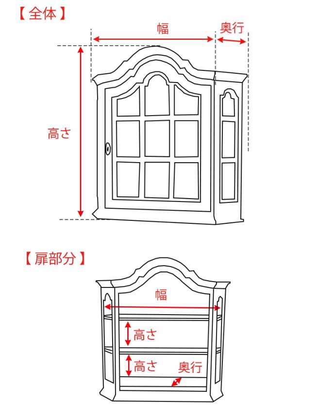 アンティーク家具らしさが漂うキャビネット - 壁につけることもできるので実用的に使えちゃう!壁からお部屋の中をオシャレに彩ってくれます。
