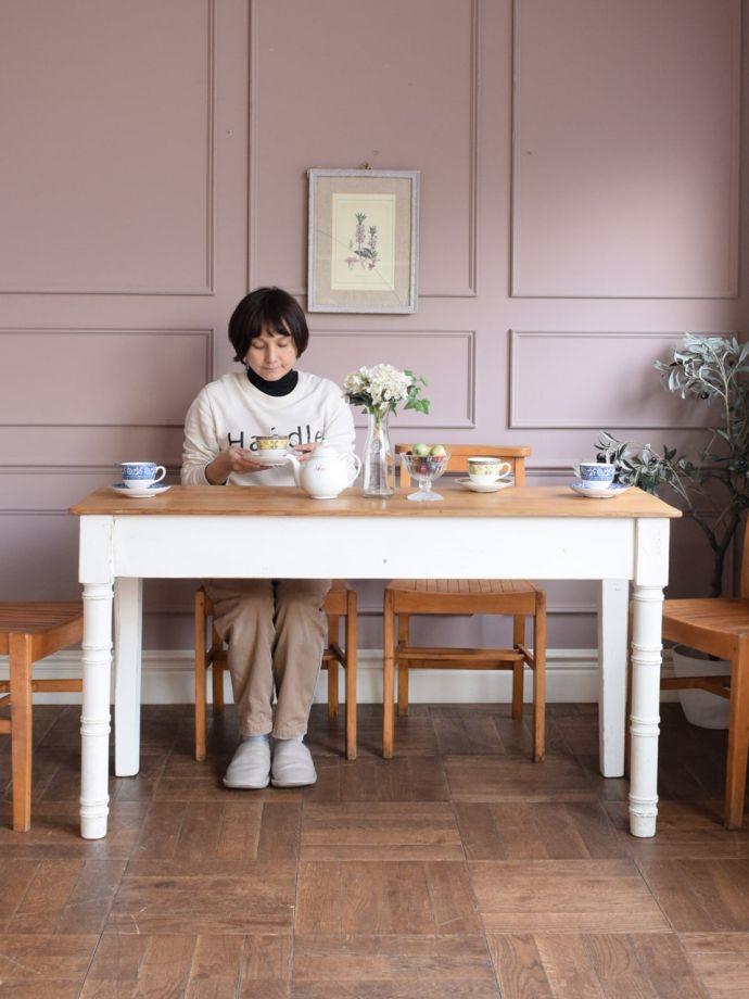 天板の表情も素敵な、なっかなか見つからなくなったおしゃれなツートーンカラーのテーブルと、フレンチシックなお部屋作りはいかがでしょう?※アンティークは1点ものです。他の方がカートに入れてSOLD OUTになった時点で同じものはご準備できませんので、ご了承下さい。在庫:1台