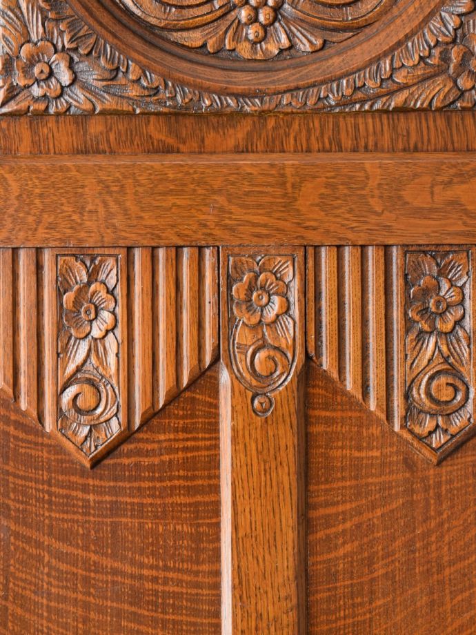 ビックリするほど細かい浅浮き彫りで、扉にお花とアカンサス、そしてブドウの模様が彫られた美しすぎるワードローブなんです。