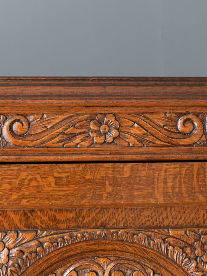 英国アンティークの華やかなワードローブ、レリーフが美しいチューダー様式の収納家具 (商品番号 z-292-f)