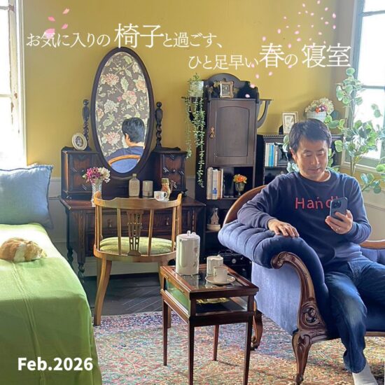 1人掛けのイスに座ると、ソファに寝転ぶのと違って、なんとも優雅でくつろげる気分になるんです。