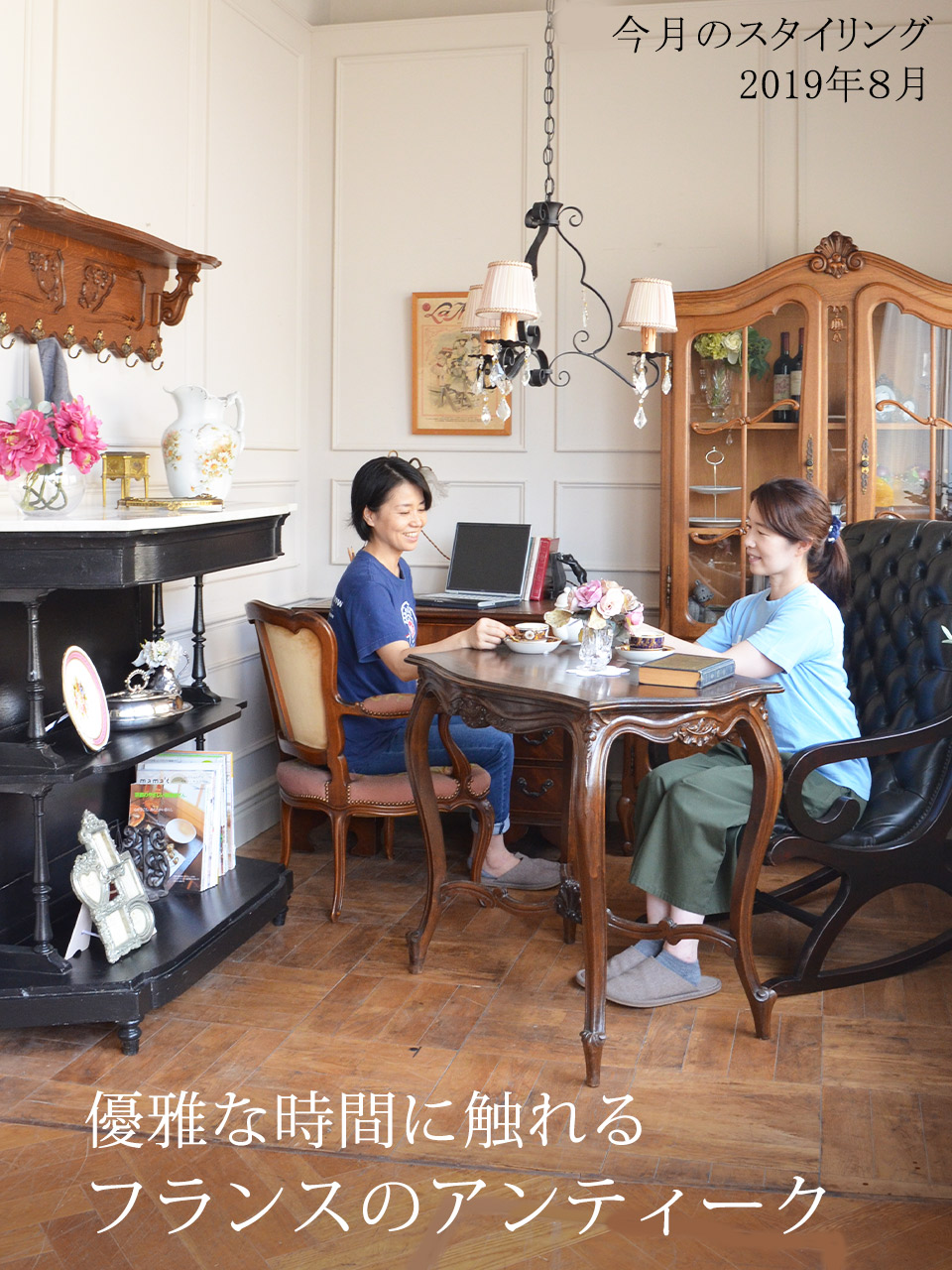 脚のデザインがとても美しいフランスのティーテーブルを置いて・・・