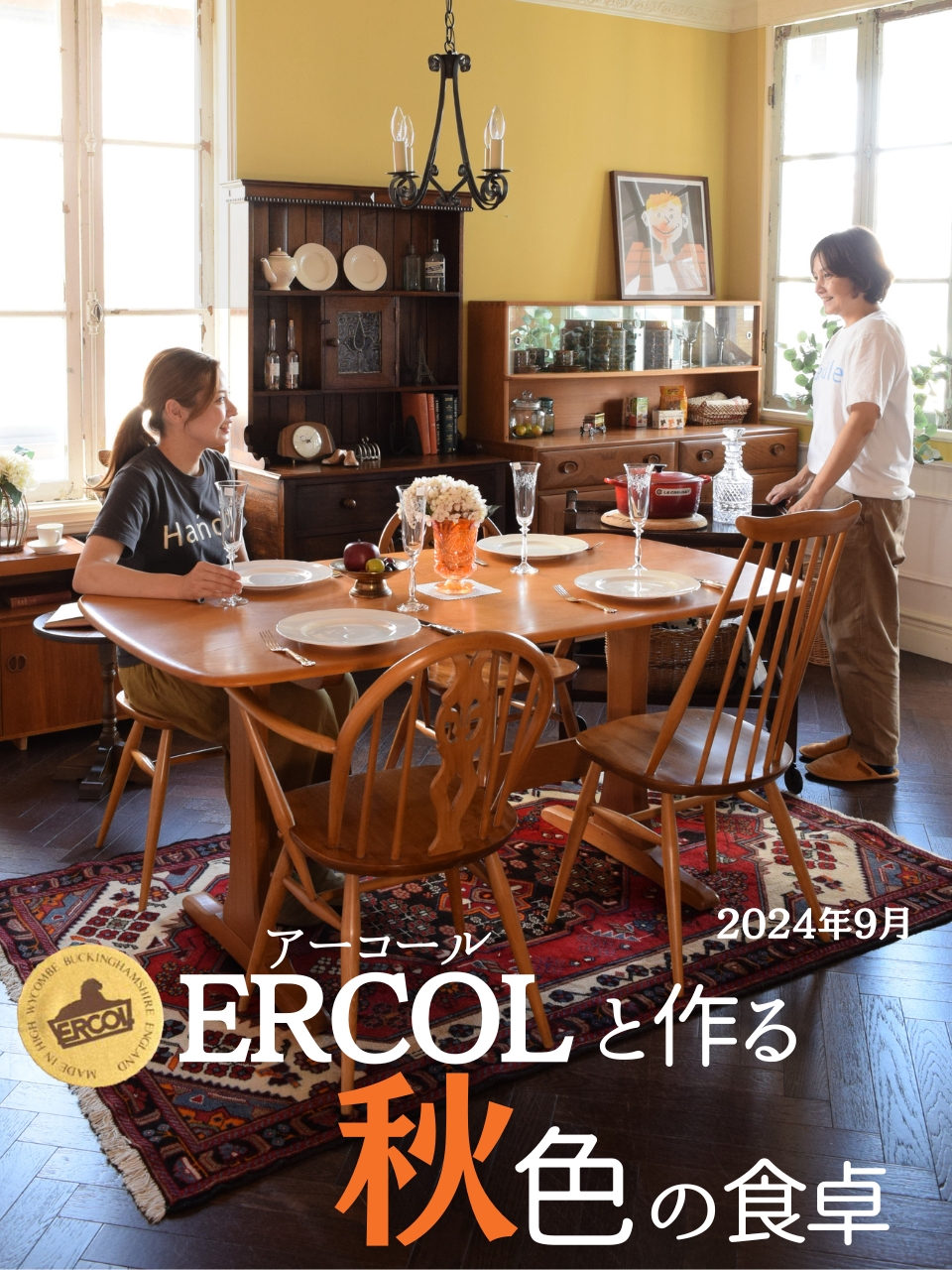 いかがでしたか?今月は、定番のアーコールの家具を中心に、チョコレート色のオーク材の家具を合わせて、メリハリをつけた秋色のダイニングをコーディネートしてみました。