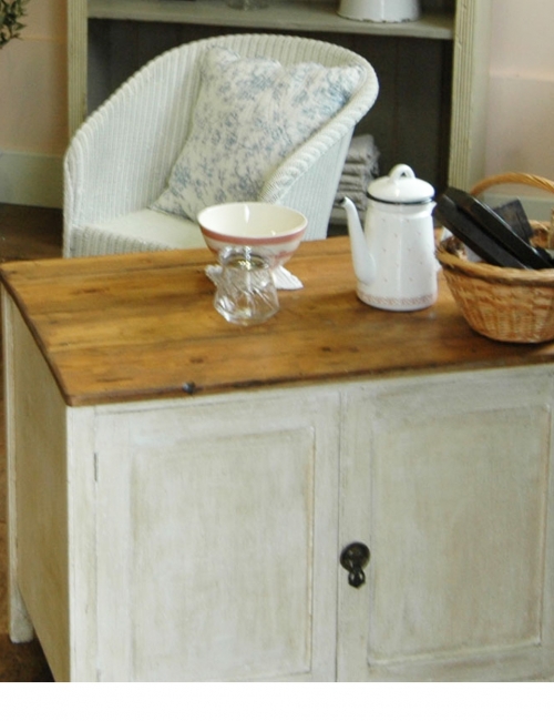 テーブルに使っていたのは、天板に味のある、小ぶりなアンティークのカップボード。