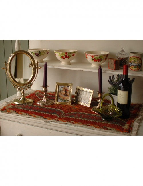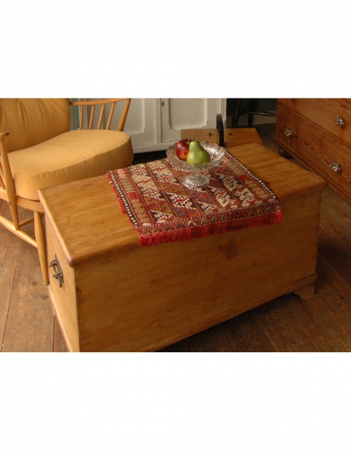 ブランケットボックスの上にもランチョンマット代わりにキリムを。