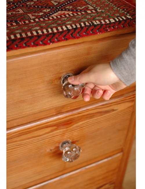 可愛いだけじゃなく、握りやすい、大人気のグラスノブのチェスト。