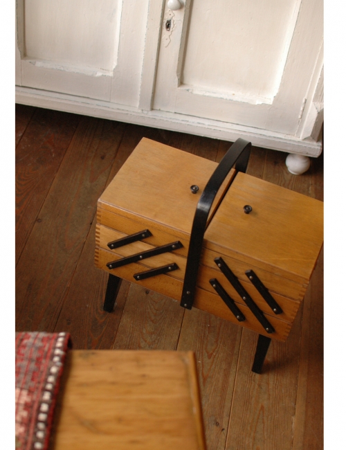 足付きのソーイングボックスは、どこに置いても絵になる優れもの。