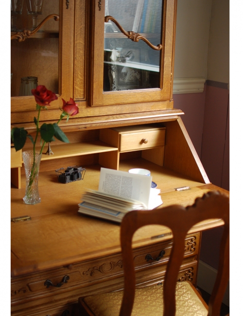 今回の主役はブックケース。 存在感たっぷりのビューローに、周りの家具をコーディネートしました。