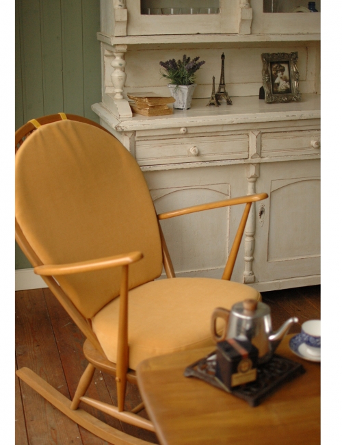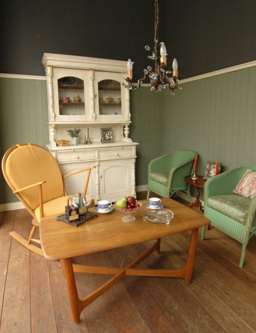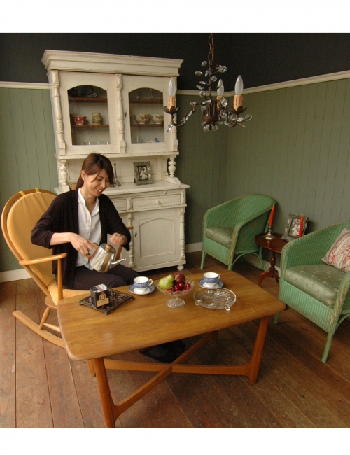 カップボードの下地の色が微妙に見える所がアンティークならではで、今の家具では絶対に表現出来ない味。