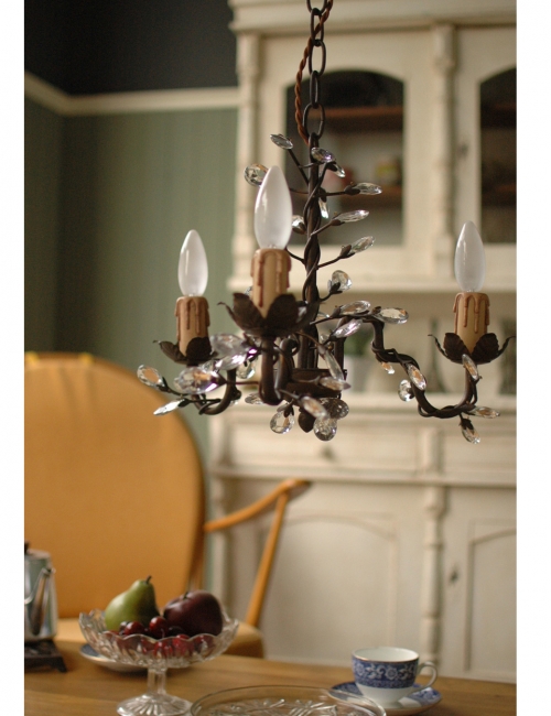 今回シャンデリアは、カップボードに合わせてガラスのキレイなものをセレクト。