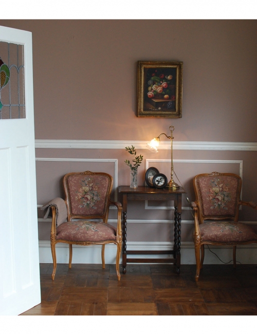 だんだん秋らしくなってくるとお部屋の中も模様替えしたくなるもの。 今月は、女性らしい雰囲気たっぷりのチェアを中心にしたお部屋のコーナー作りのご提案です。