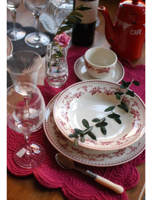 コントワール・ドゥ・ファミーユの食器を使ってテーブルコーディネート。