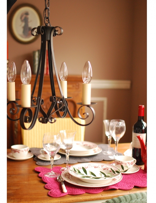 シャンデリアは、シンプルなアイアンで、空間を引き締めてみました。