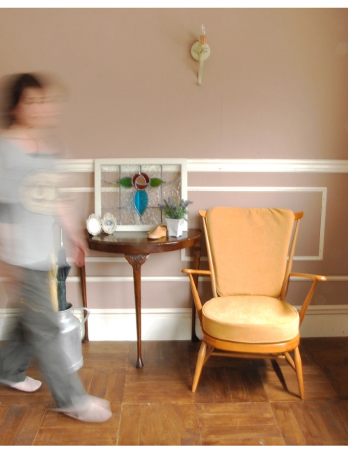 家具のことを学びながら、そこで得た知識と固定観念にとらわれない主婦目線での女性らしい提案が、お客様に喜んでもらえることが嬉しくなり、薬の研究を辞め、インテリアの研究に没頭することを決める。