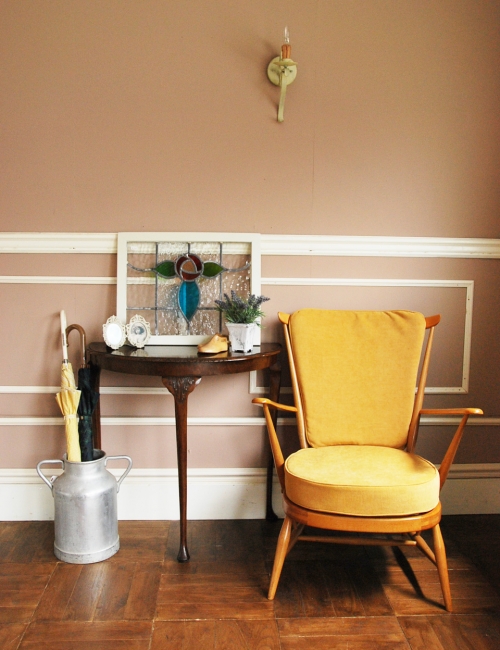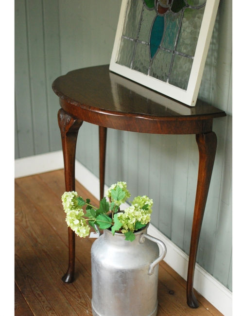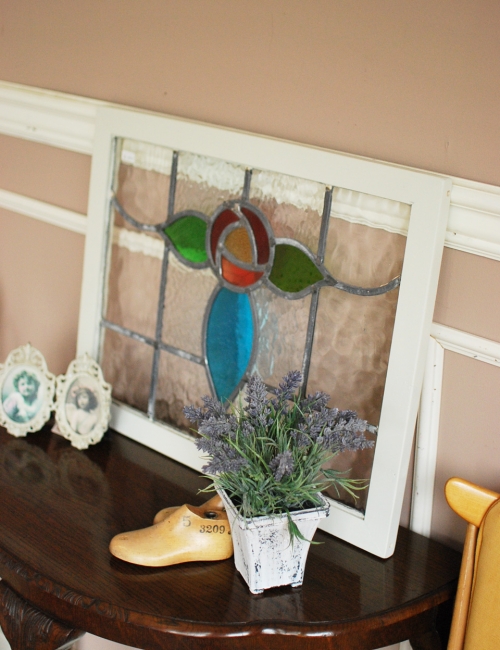 玄関先にコンソールテーブルを置いてステンドグラスを置くだけで、 あっという間に素敵なお家に。