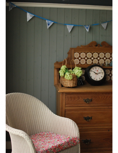 タイルが美しいウォッシュスタンド。 チェストタイプなので、子供部屋にもぴったりです。