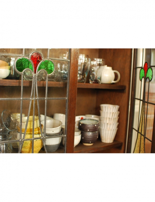オーク材のアンティーク家具に、和食器はとてもよく似合います。