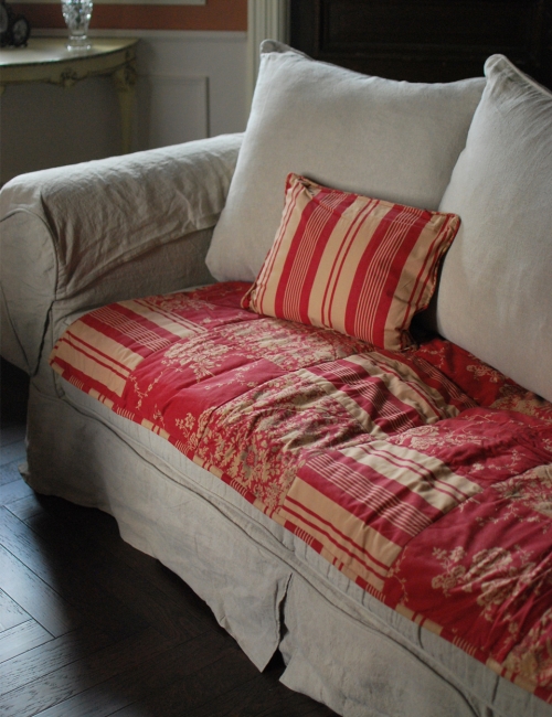 ソファに秋色の赤いカバー