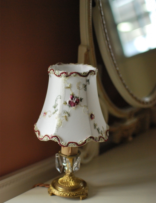 テーブルランプのシェードにも、さりげなくお花が刺繍してあります。
