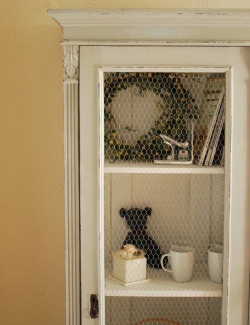 グリアージュ越しに見える雑貨は、なんだかいつもより可愛く見えちゃう。リースを中に飾って華やかに。