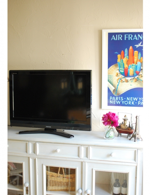 テレビもペイントの家具の上に置くと、なんだか素敵なオブジェに見える?!