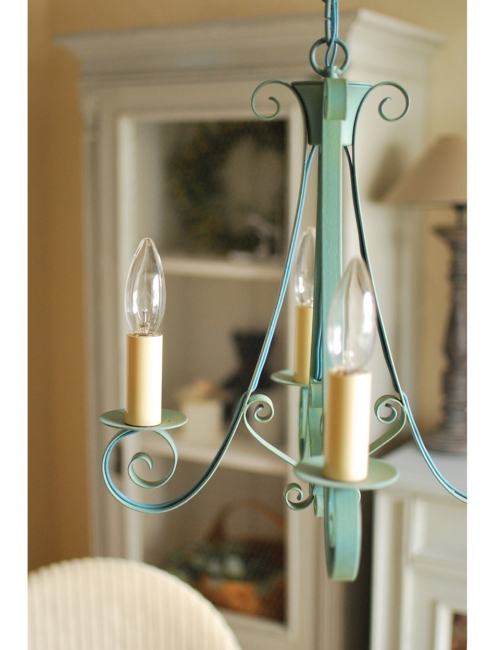 家具に合わせて、シャンデリアも可愛いブルーのものをセレクト