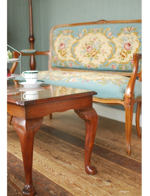 今回の買い付けの目玉。エドワリアンのキャビネットとプチポワンのサロンセットです。