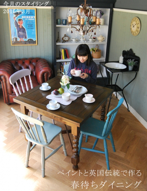春が来ました!今月はペイント家具に英国伝統のアンティークの異色コラボ作るダイニングです。